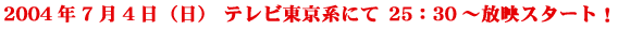 2004年7月4日(日)テレビ東京系にて25:30〜放映がスタートします!!